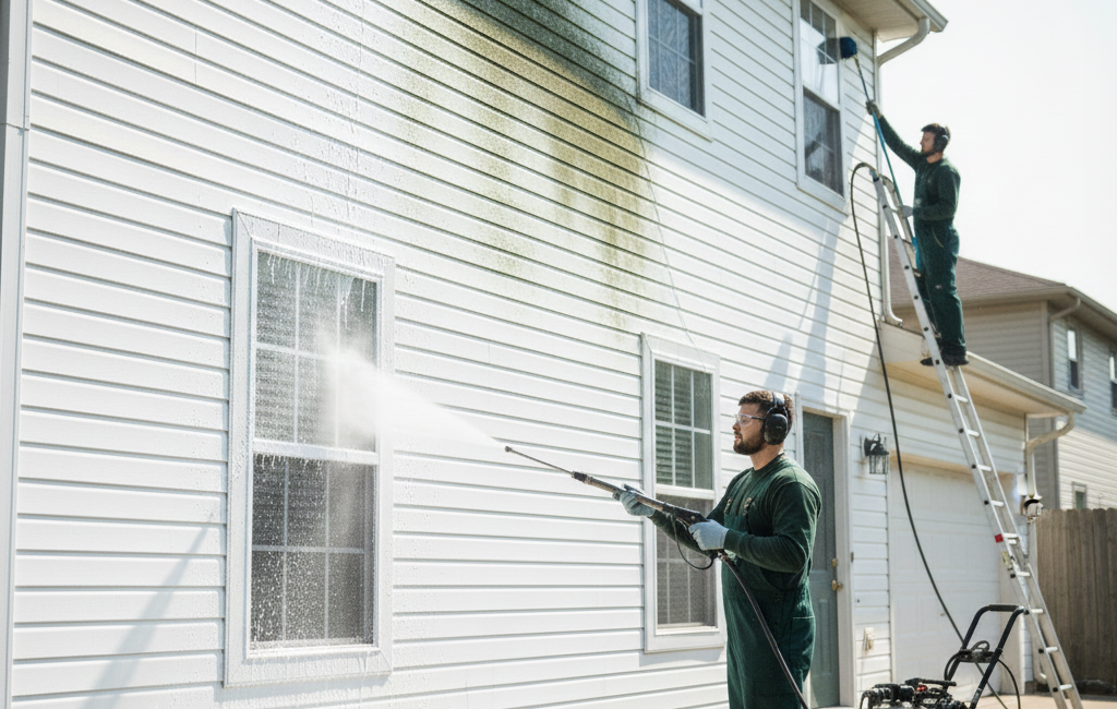 We offer professional soft washing for delicate surfaces. This gentle cleaning method uses low-pressure water and specialized solutions to safely remove dirt, algae, mold, and mildew from siding, roofs, fleet vehicles, and more—protecting your property while delivering a spotless finish